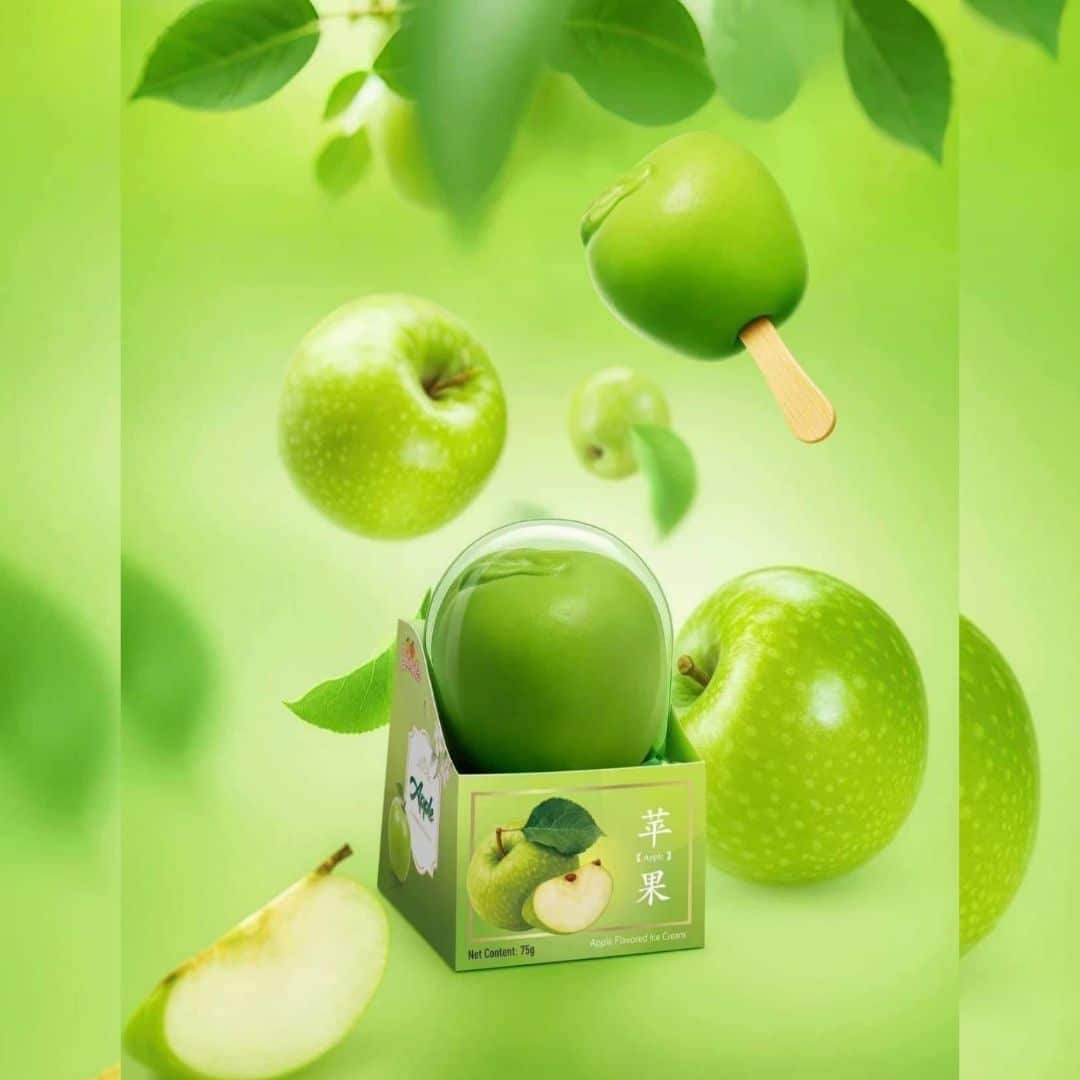 הליבה הקרמית: מתחת לציפוי מחכה לכם גלידת שמנת עשירה, קטיפתית ומלטפת בטעם תפוח רענן. הטעם הוא איזון מושלם בין מתיקות עדינה לבין החמיצות המפורסמת של התפוח הירוק, מה שיוצר תחושת רעננות שנשארת בפה לאורך זמן.